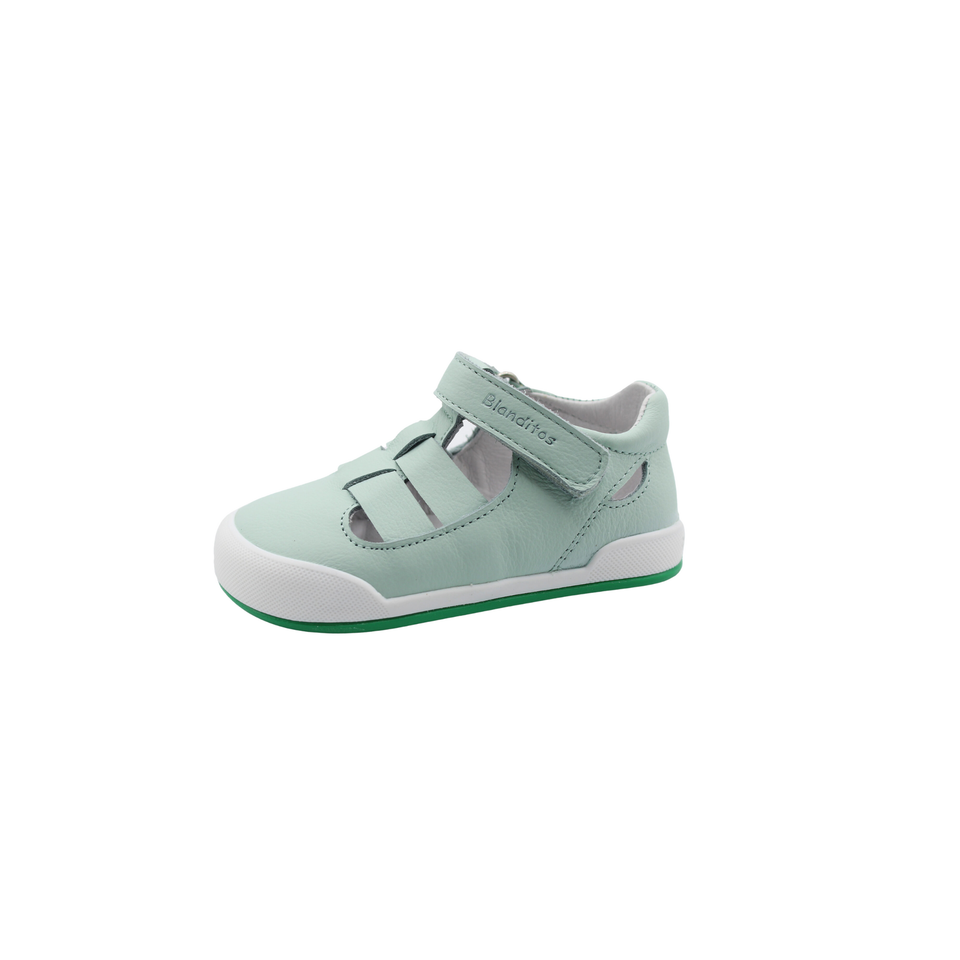 Sandalia Blanditos, modelo Océano y color verde. Suela de 3 mm y bicolor. Puntera de goma.