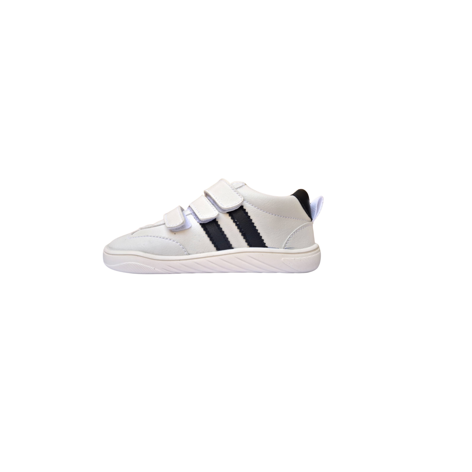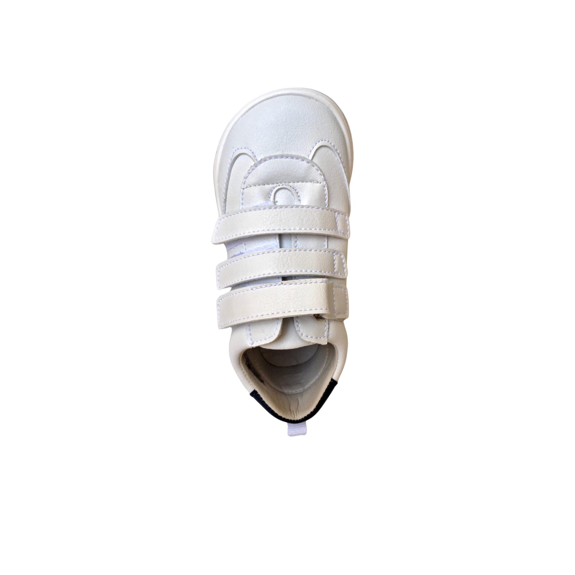 Deportiva colegial Piruflex. Color blanco con adornos en azul marino.